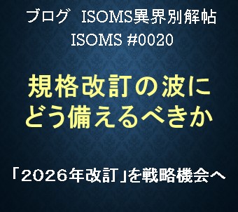 ISOMS異界別解帖 2025-09-16 最終更新日時 : 2025-10-13 編集長FacebookXBlueskyHatenaCopyこのブログでは、主にISO 9001(QMS=品質)及びISO 14001(EMS=環境)のマネジメントシステムを中心に、関連する話題やキーワードを書き連ねて行きます。