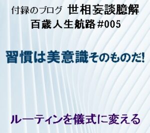 ルーティンを儀式に変える 百歳人生航路 #005 「習慣」と聞いて、何を思い浮かべますか? 歯磨き?朝の散歩?日記?──それも大事。 でも、百歳人生に必要なのは、美意識としての習慣。 それは、日々の繰り返しを […]