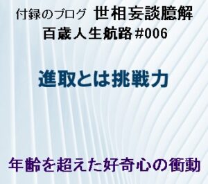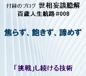 その一からその三まで 百歳人生航路 #010 今回から4回にわたり、人生百年時代を生きるための 「心得帖十箇条」、すなわち十の心得を解説します。 これは、“大いなる航海”である百歳人生 […]