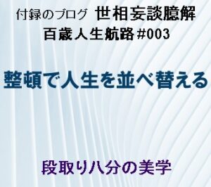 まずは整理から始めよう 百歳人生航路 #002 「断捨離」って言葉、もう聞き飽きました? でも、人生の“整理”は、単なる片づけじゃありません。 それは、過去の棚卸しであり、未来への準備運動。 百歳 […]