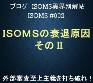 ISOMSの衰退原因 そのⅡ ISOMS#002 本ブログでは、「ISOMS衰退原因」の二番目「外部審査のイベント化」について考察します。 はじめに ISOマネジメントシステム(ISOMS)が組織に導入された当初、外部審 […]