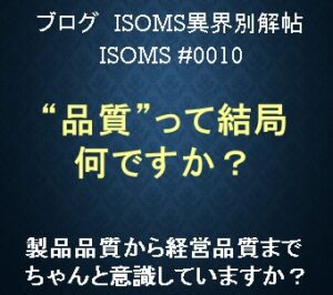 「製品品質」から「経営品質」? ISOMS#010 今回は、ISO 9001の主要元素である品質について考察します。 私たちは「品質が悪い」とか「品質管理がおかしい」と言いがちですが、その原理原則について改めてここで考え […]