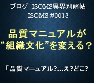 「品質マニュアル ?…え?どこ?」 ISOMS #013 前回(ISOMS #012)に引き続き、今回も品質マニュアルのあるべき姿を考えます。 はじめに かつて品質マニュアルは、ISOを導入するすべての組織において“看板 […]